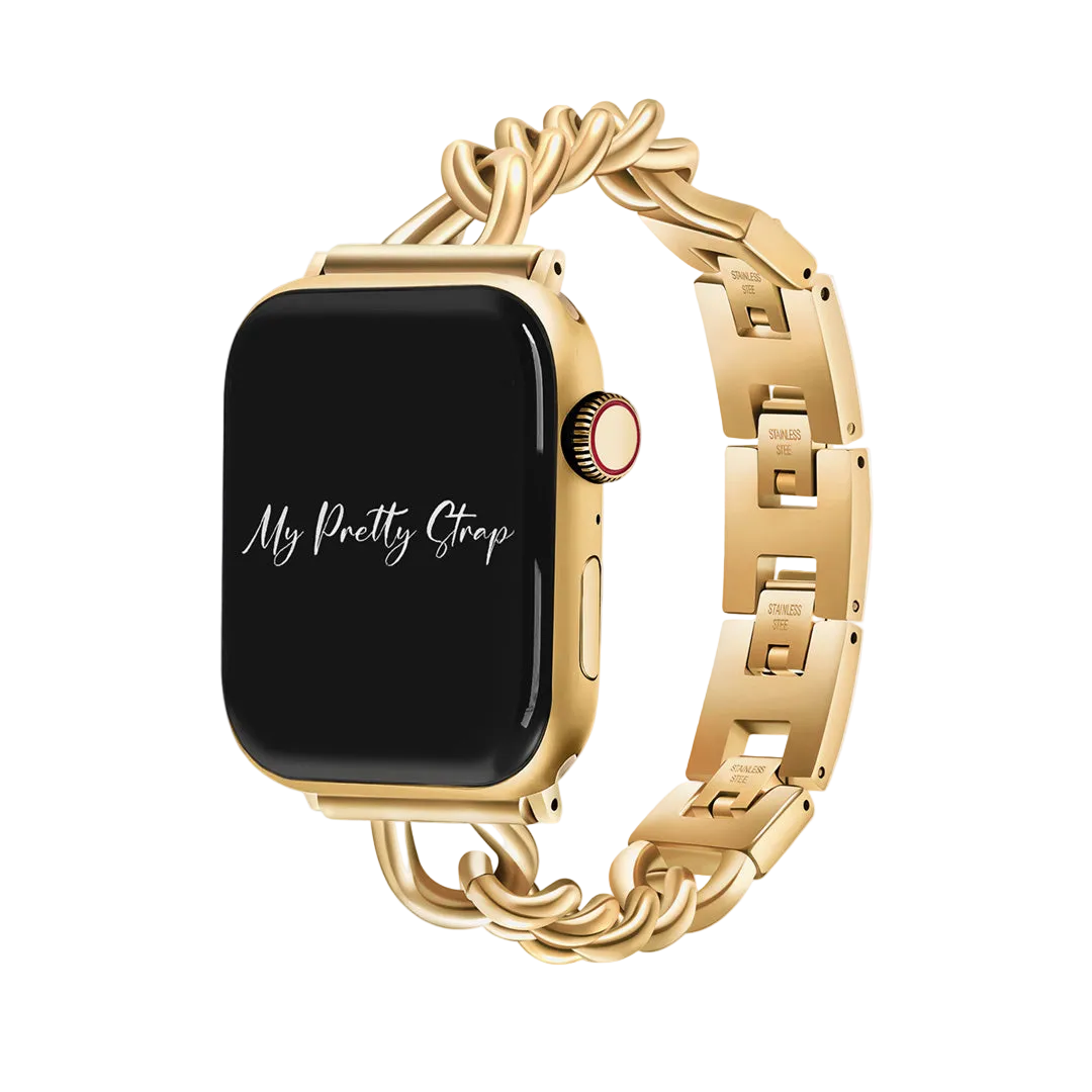 Crafted from premium stainless steel and twisted into elegant woven link chains, this watch band elevates your Apple Watch with its luxurious look & feel. Each watch band comes with its own metal adapter, designed to fit your Apple Watch seamlessly straight from the box.